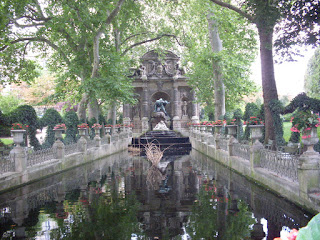 A Fonte de Médicis, com a estátua de Acis e Galatea ao fundo, nos Jardins de Luxemburgo em Paris.
